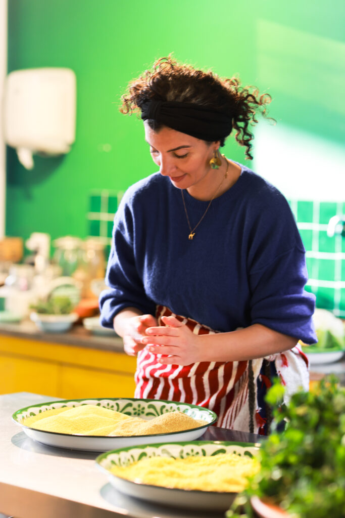 School of couscous Cook & eat like a Moroccan family Workshop by our couscous mama We will welcome you with our famous Moroccan whisky; fresh brewed green tea with fresh mint. We will take you on a journey throughout the couscous history and traditions of Morocco “Our motto is: steaming couscous is a labour of love” We will give you tips & trics so you can steam and prepare your couscous at home like a proper Moroccan mama While preparing and eating your couscous we will inform you about all the couscous rituals